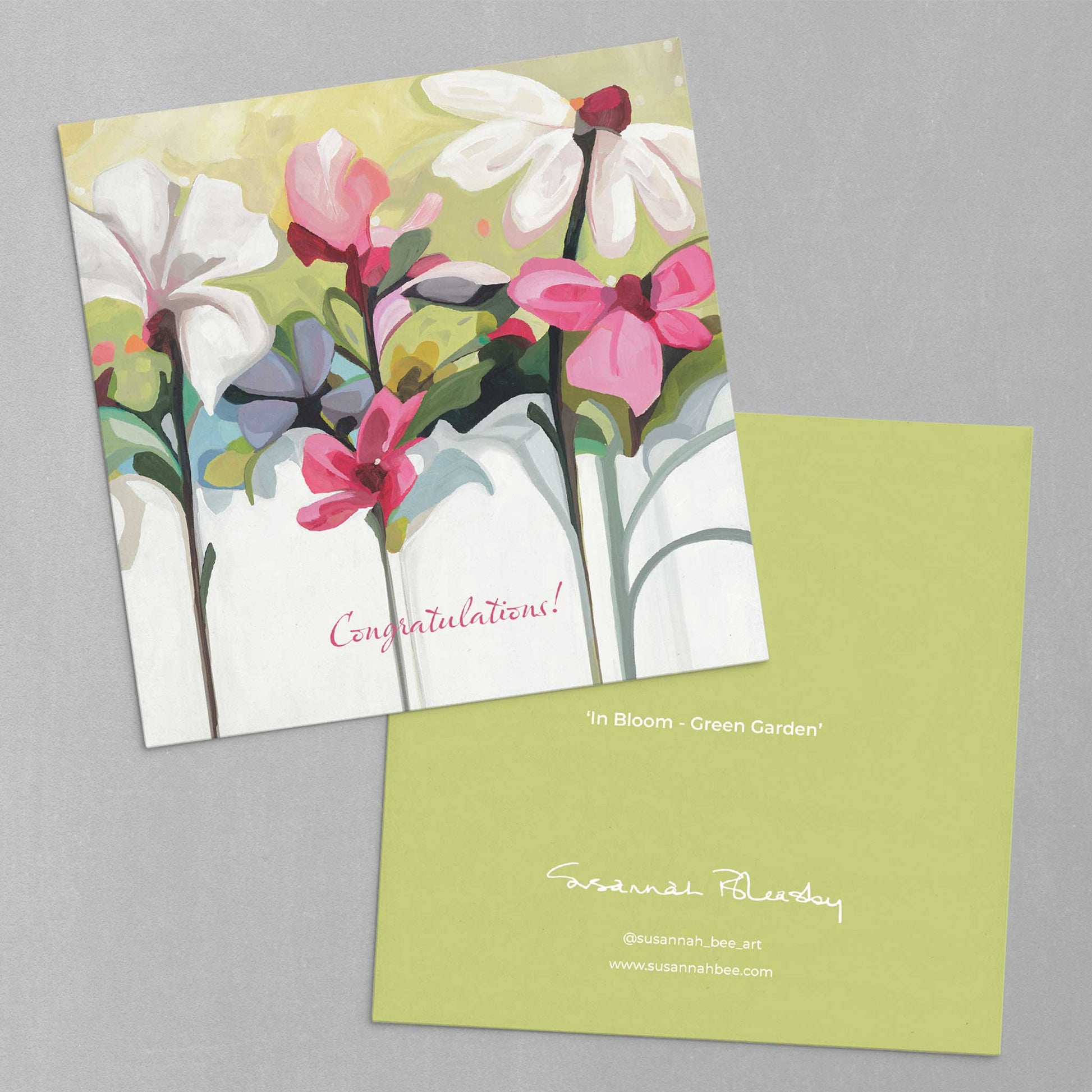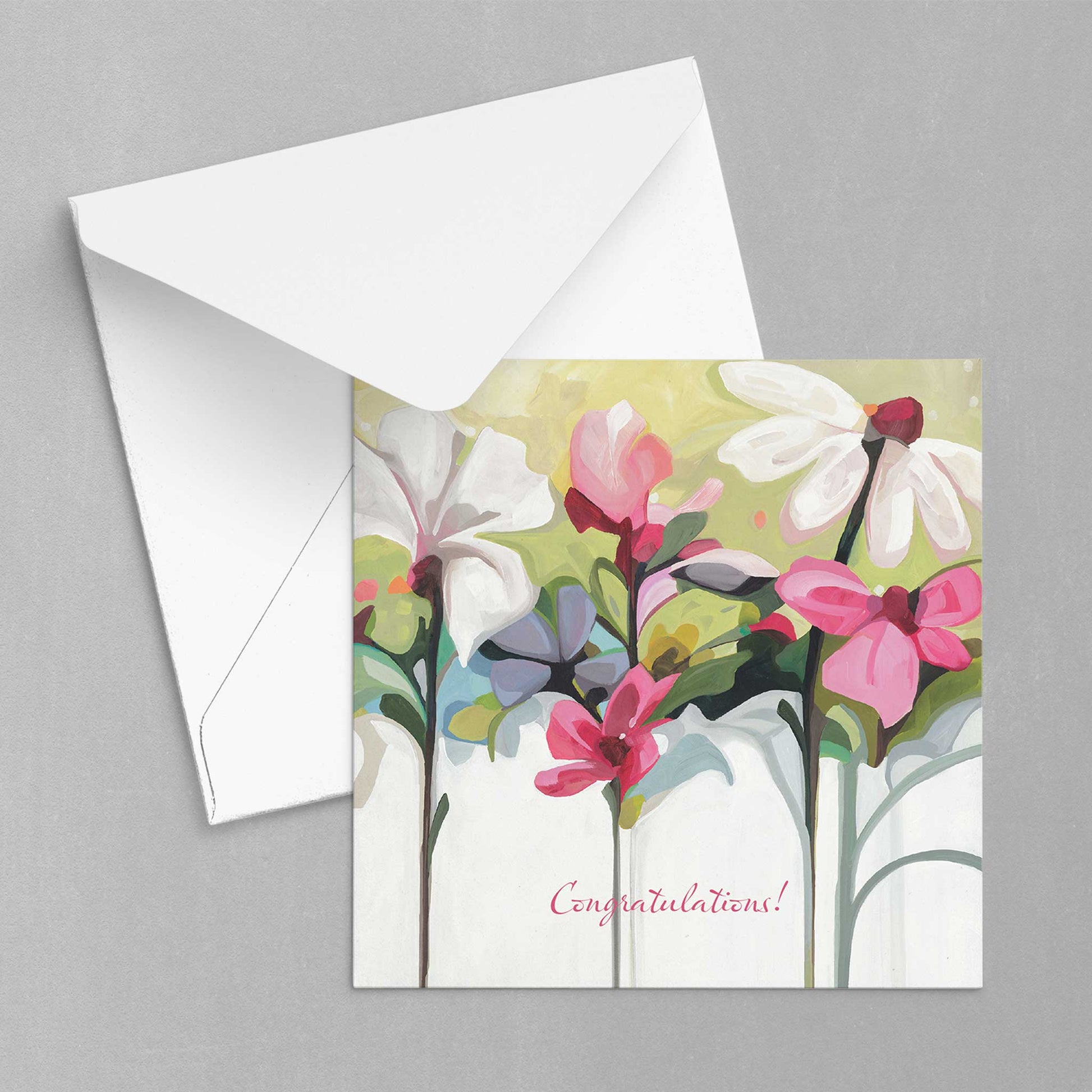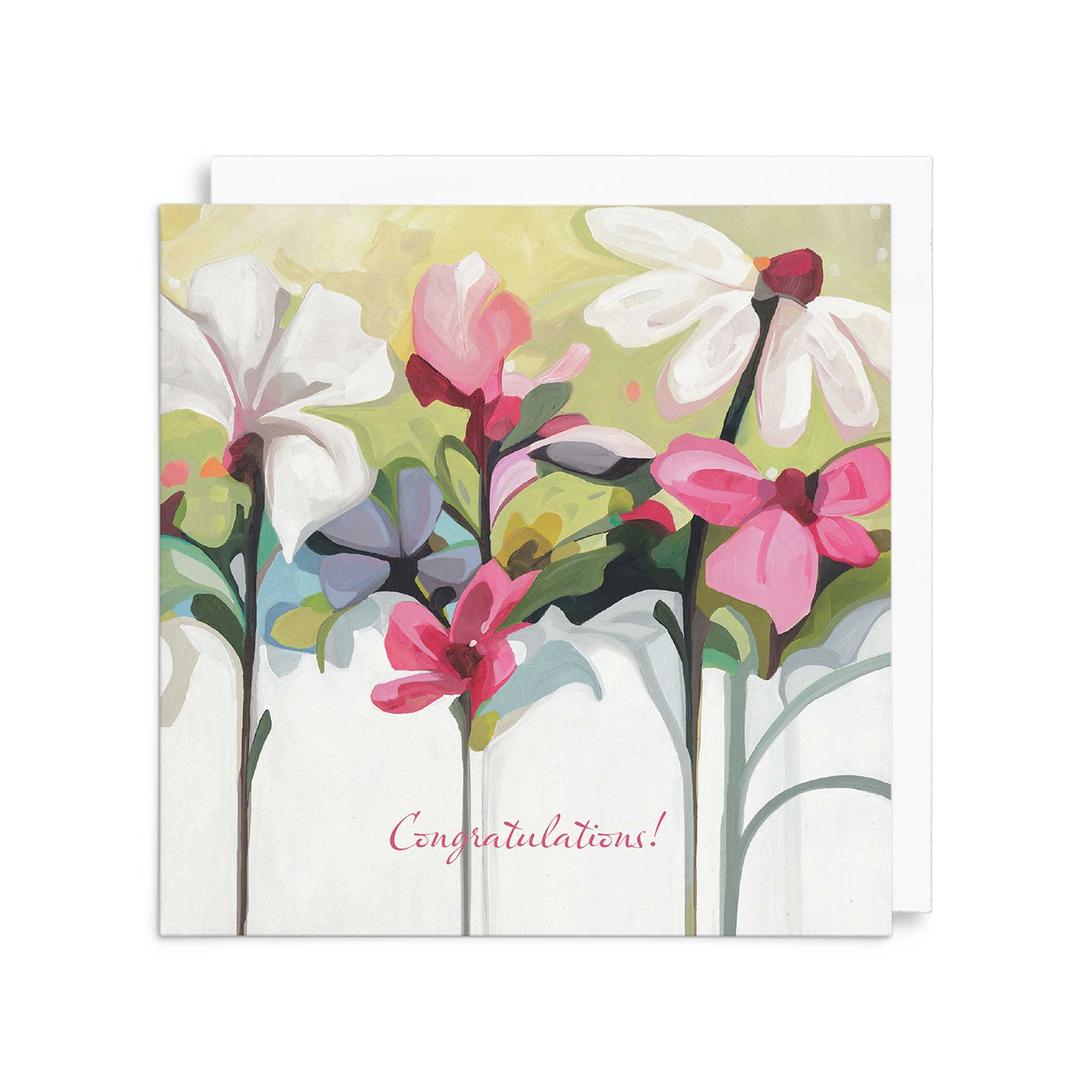 Whatever the reason – a wedding, new house, big promotion, minor victory, or personal goal achieved – one of life’s joys is watching someone reach a goal they’ve been working towards. The joyful floral image with its abstract pink, white and mauve flowers is perfect for many celebratory occasions including as a wedding card, a new baby card, graduation card, or engagement card.
