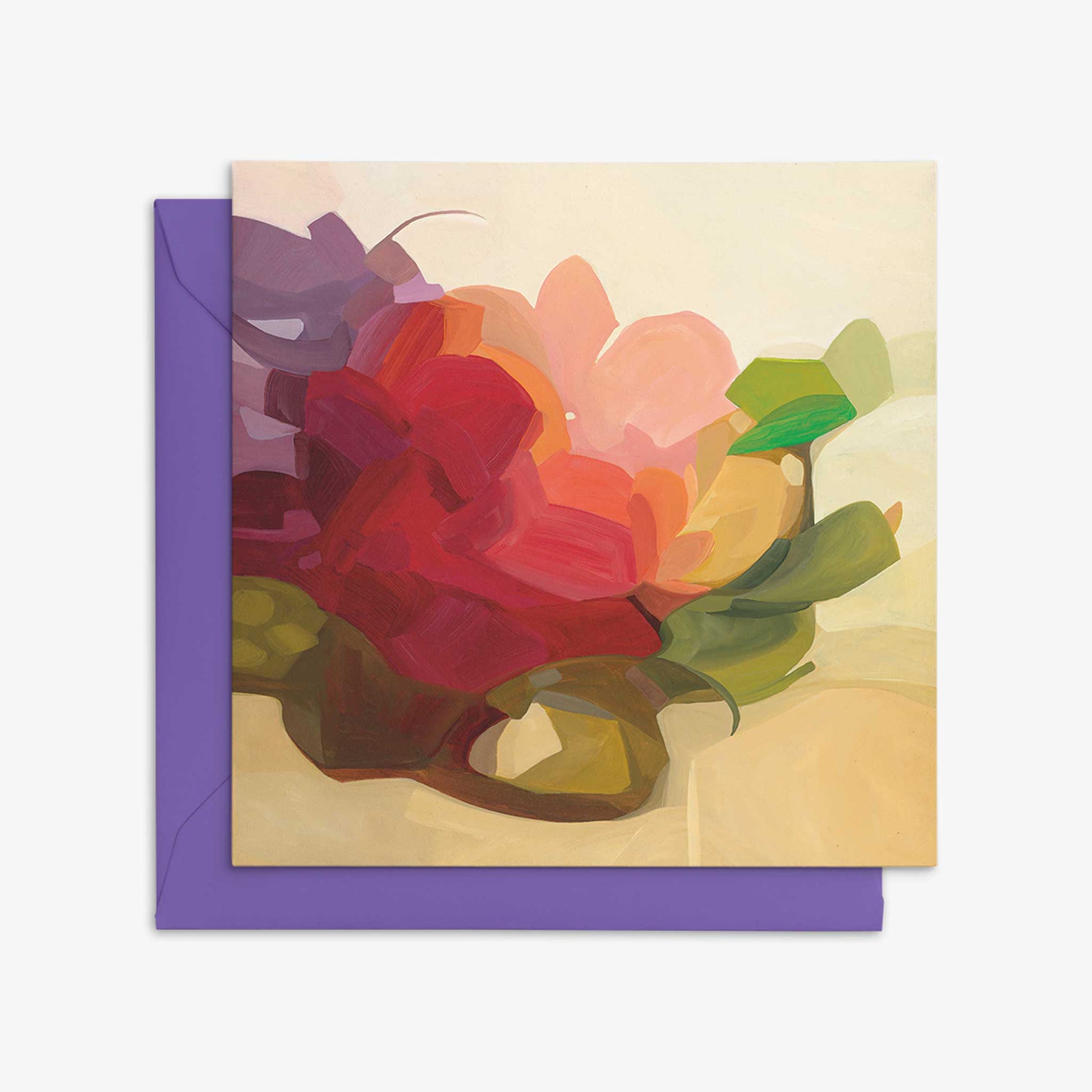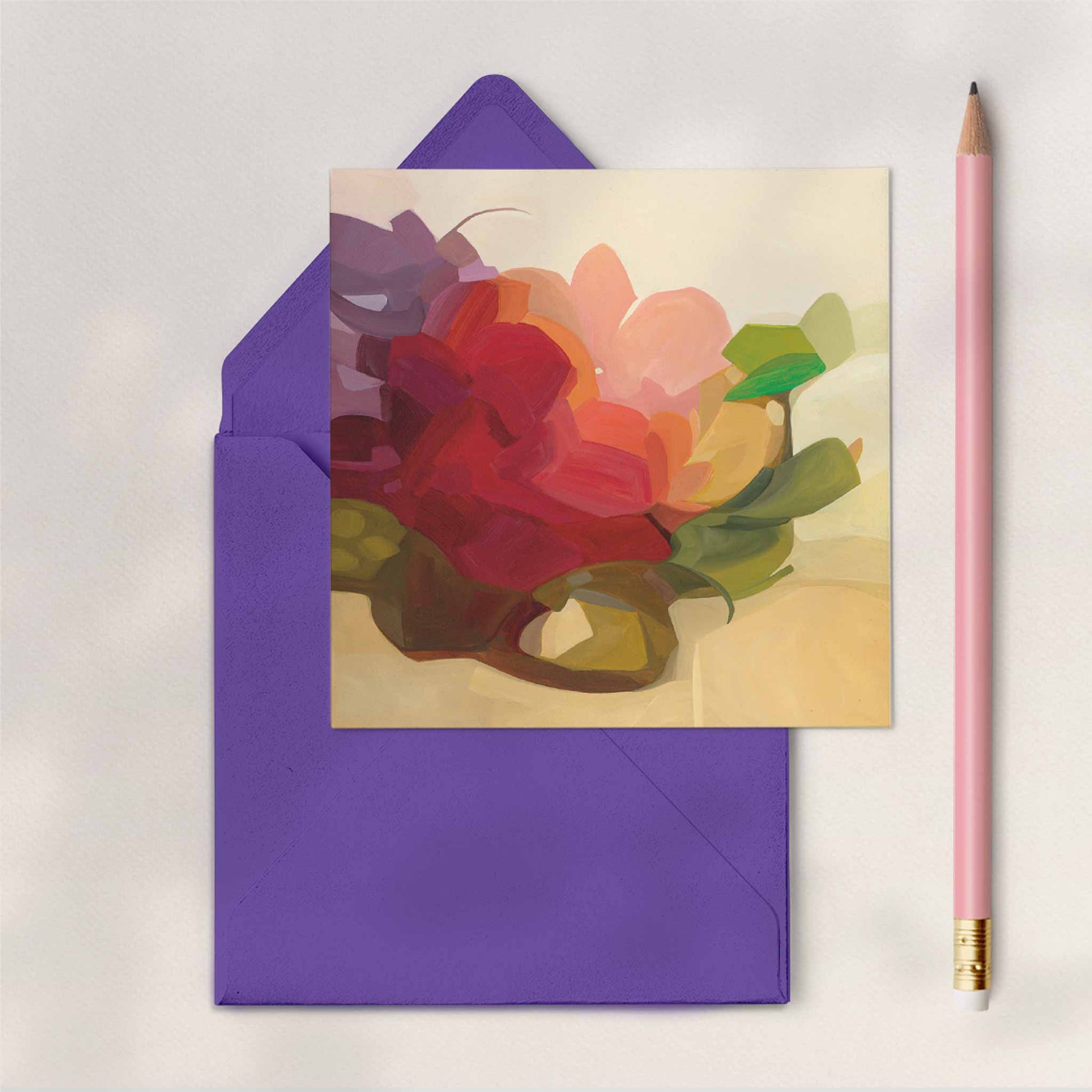 An art card that captures the beauty of a sunflower basking in the warmth of the September sun. Featuring an abstract painting that reflects the golden glow of autumn sunshine, this blank card provides the perfect backdrop for a personal message. Ideal for birthdays, anniversaries, or just because, it's cheerful and versatile for any occasion.