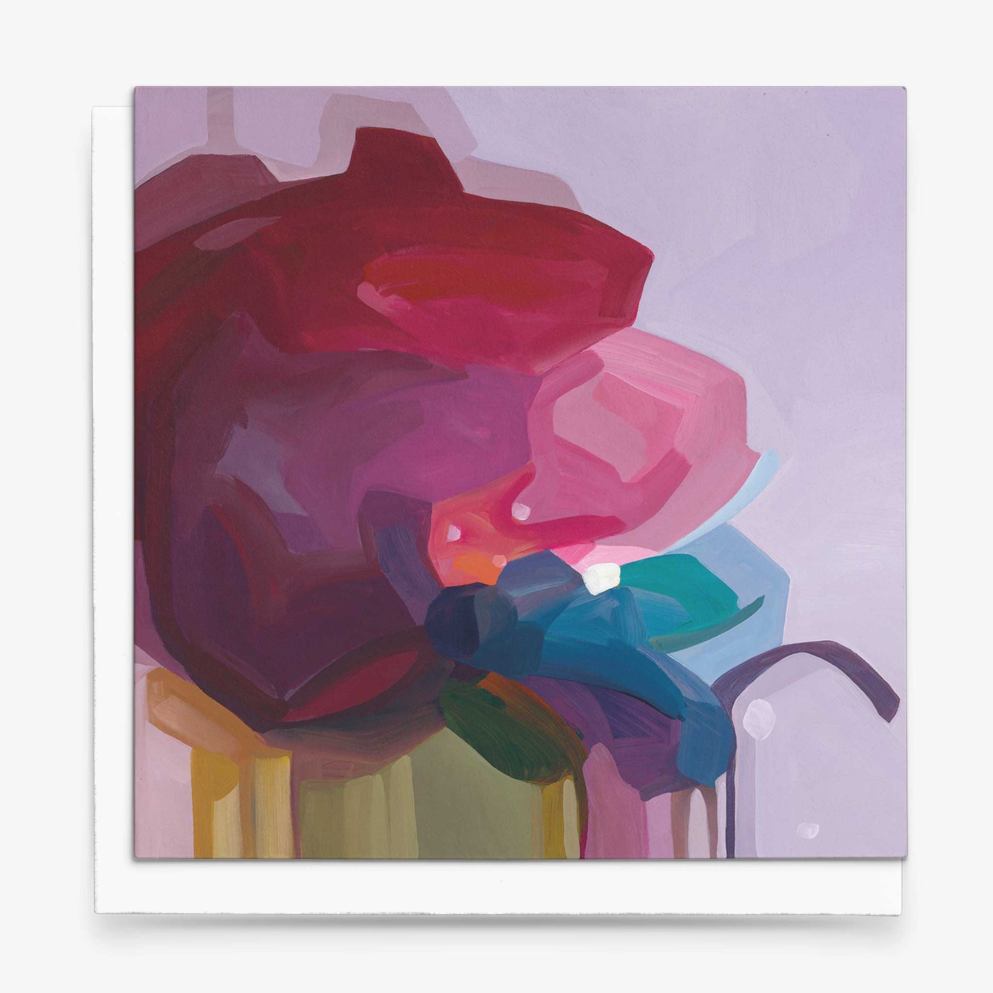 Embrace spring in all its colourful glory with an art card showcasing an abstract painting of purple flowers bursting into bloom. Soft lilac provides a beautiful backdrop for these spring blossoms and their riot of colour, bringing the spirit of the season to life. Send a springtime greeting and brighten someone’s day with cheerful beauty!