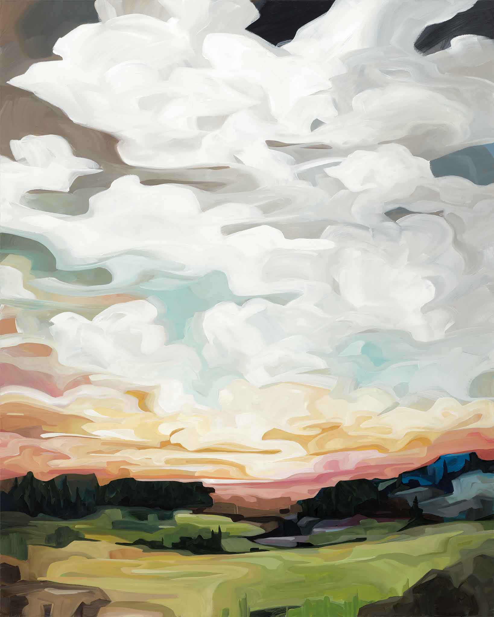 I love paintings that surprise me! I set myself up for a bit of a challenge and something different with this one - mostly setting the usual colours aside and experimenting with neutrals and browns and earth-y, soft colours and am 'wowed' by how it turned out! This warm and cozy sky with its unusual palette and subtle blends just radiates love.